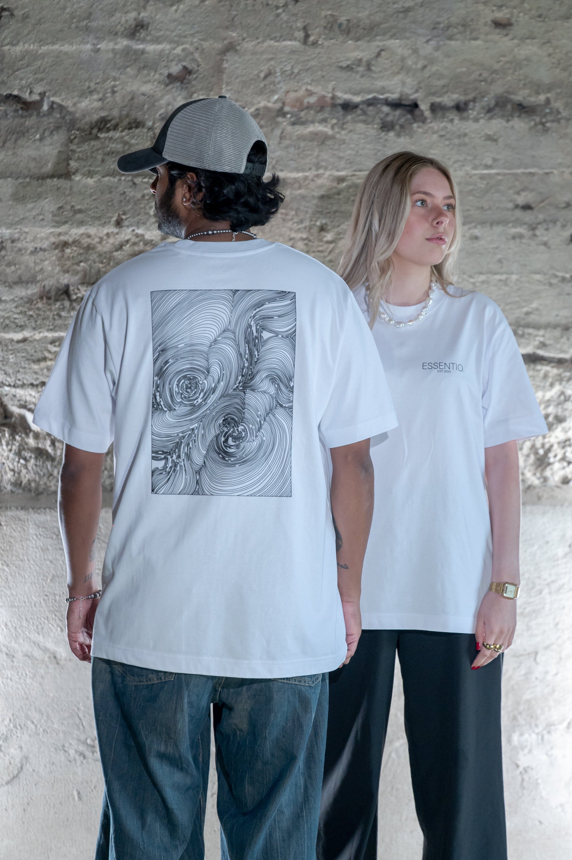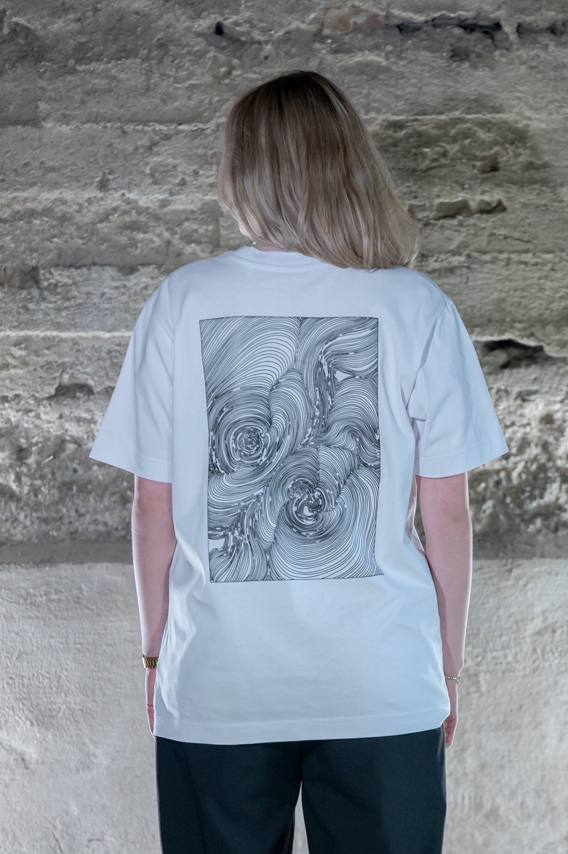 Lines Tee kombinerer kunst og kaos i et abstrakt linjemønster, der får folk til at kigge en ekstra gang.